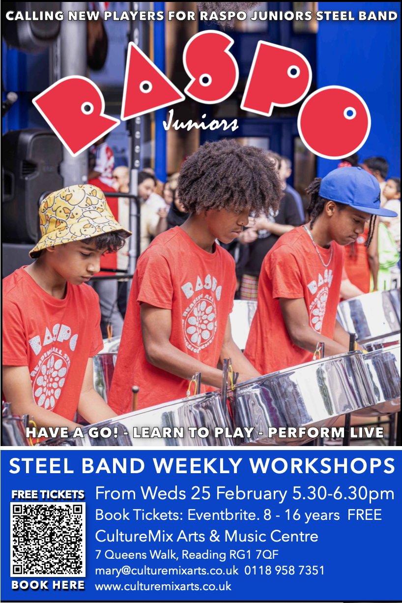 Book free tickets for regular weekly workshops with RASPO Juniors and start your exciting steel pan music journey learning songs, performing live to audiences and developing a new skill that will last a lifetime.